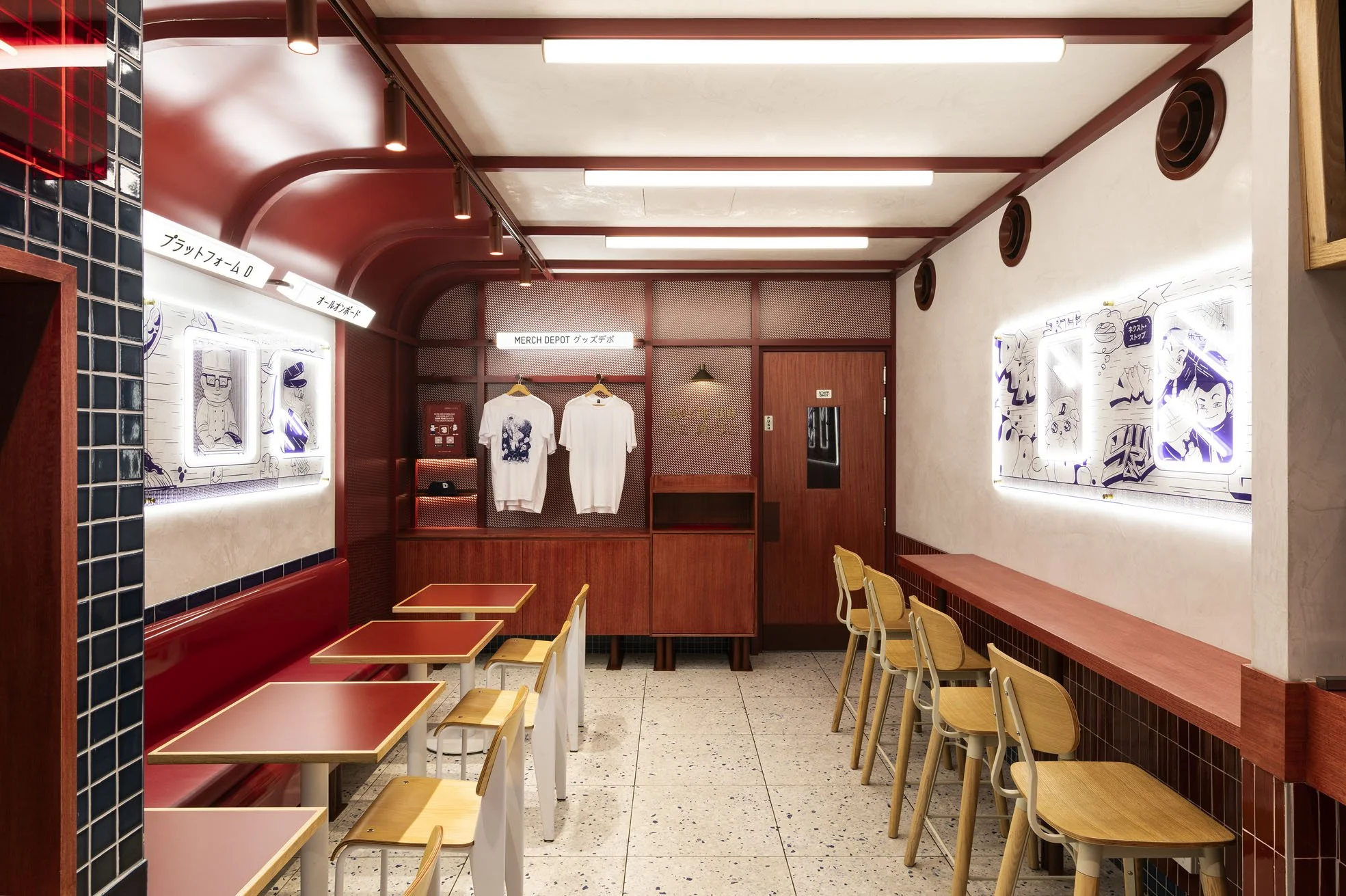 As the design team explains: “It’s about capturing that distinctive Tokyo transit energy, high-impact visuals paired with intelligent, space-efficient planning that respects the customer’s time while offering a sensory escape from the everyday commute.”